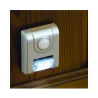 • Lights automatically, no outlet required • Detects motion up to 10 feet • Four ultra bright LEDs • Auto off after 20 seconds • Mounts easily with peel and stick adhesive • Lasts 100,000 hours • Uses 3AAA batteries, not included • 3-1/4” x 2-3/8”