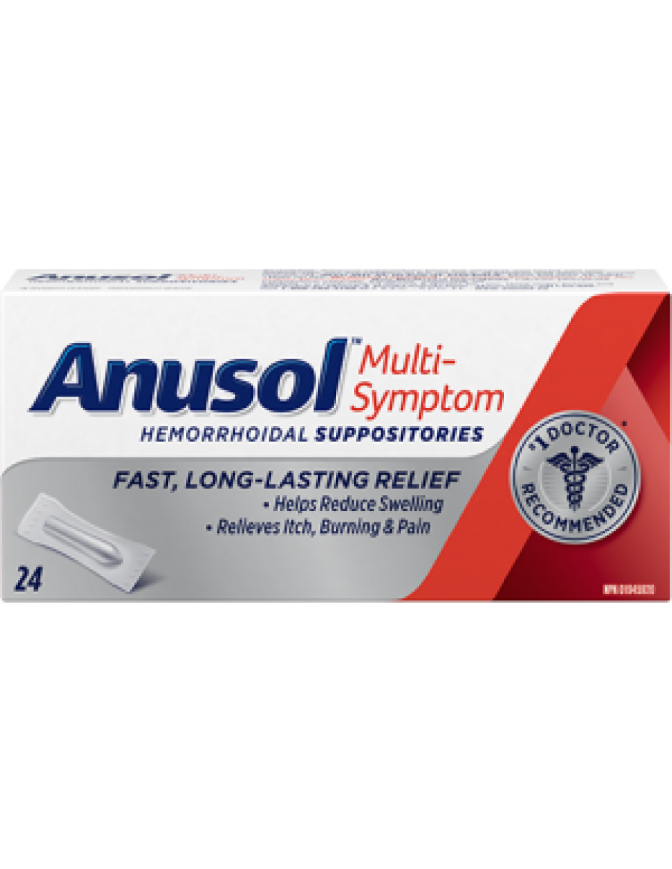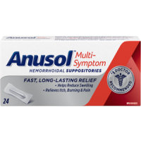 For quick relief of multiple hemorrhoids symptoms such as burning, and itching, try mess-free ANUSOL Multi-Symptom Suppository. Designed for comfort in mind, it contains a gentle astringent to reduce swelling, giving your hemorrhoids a better chance to heal.