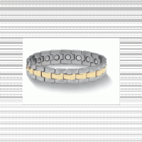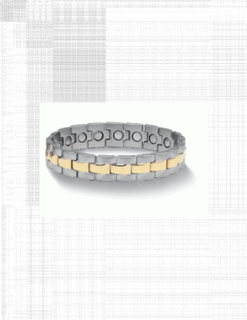 Magnetic bracelets are most commonly used to relieve muscle or joint pain in the hand, wrist, arm or shoulder. Other benefits include: more energy and body strength, stress relief, reduced hypertension, better sleep, pain relief in other areas of the body. When choosing a magnetic bracelet consider the following: number and strength of magnets; durability of materials; most importantly, you must like the design!. If you don't like it, you will not wear it and it will not benefit you! Classic, designer styles, constructed of surgical grade stainless steel with 24K Gold plating where shown. No need to remove while bathing or swimming. Sizes can be easily adjusted by adding or removing links just as you would size a watchband. The best quality, most powerful samarium cobalt magnets in every link. Magnetic Material: Samarium Cobalt Manufacturer's Rating: 11,000 Gauss Surface Gauss; 1000 Gauss (each magnet) Penetration: 3" (8cm) Polarity: North Pole-Negative(-) Description Rolex watchband design for the discriminating taste. 19 Magnets Caution Persons fitted with pacemakers, defibrillators, implanted insulin pumps or other electro-medical devices should keep magnetic products at least 18 (45cm) from the device. Pregnant women should consult their health care professional before using magnetic products.