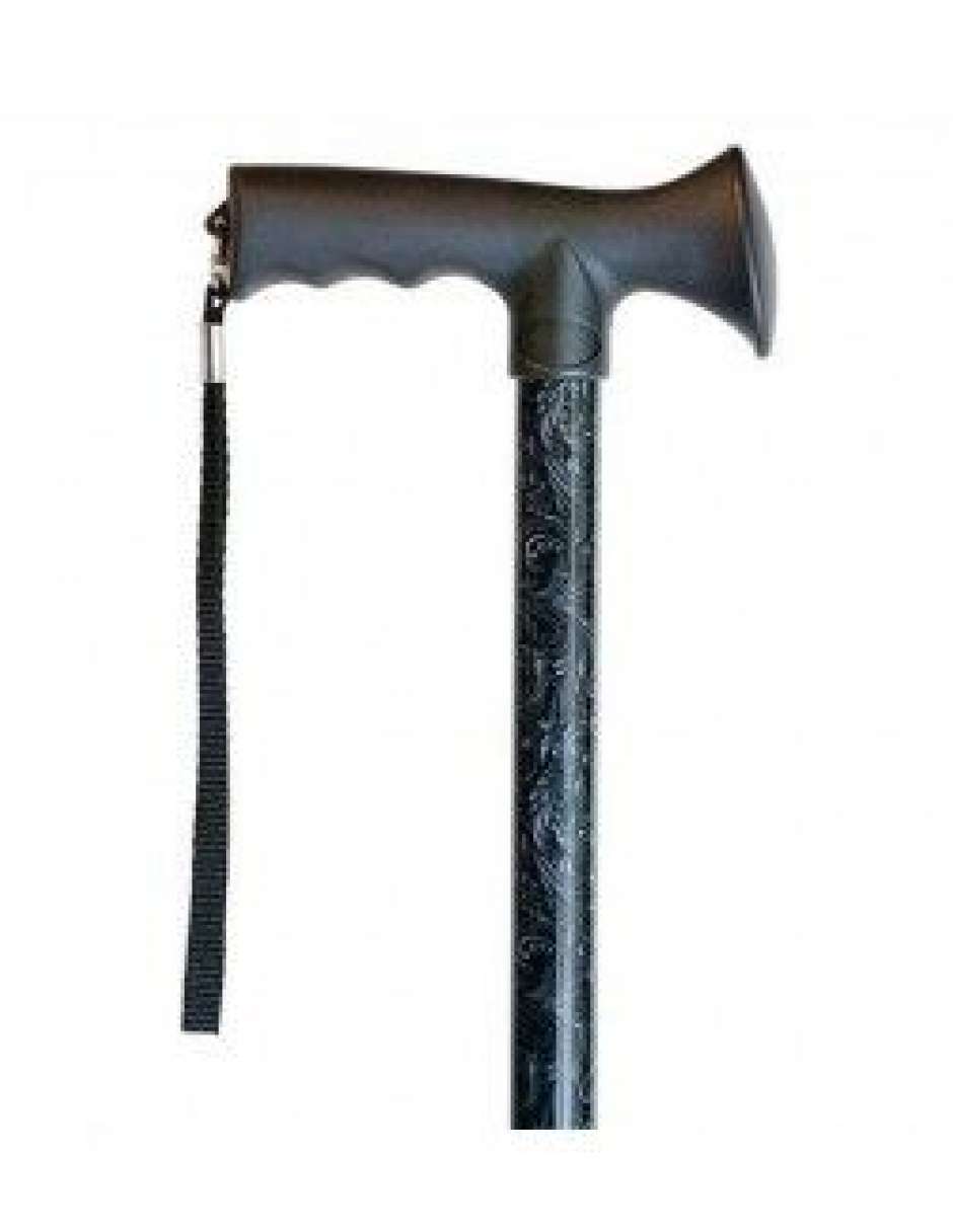 Norlean Nights design walking cane. With overmold wide rubber grip, locking nut and push button adjustment. Adjusts from 33-37".