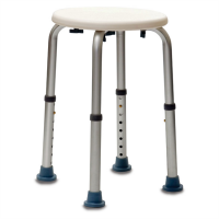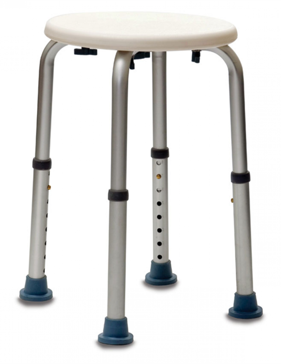 Feel secure in shower stalls and tubs with this round seat shower chair. Ideal for smaller tubs and shower stalls, this product has slip-resistant rubber tips for added safety. Small and easily portable. Sold in a bilingual (English and French) color retail box.