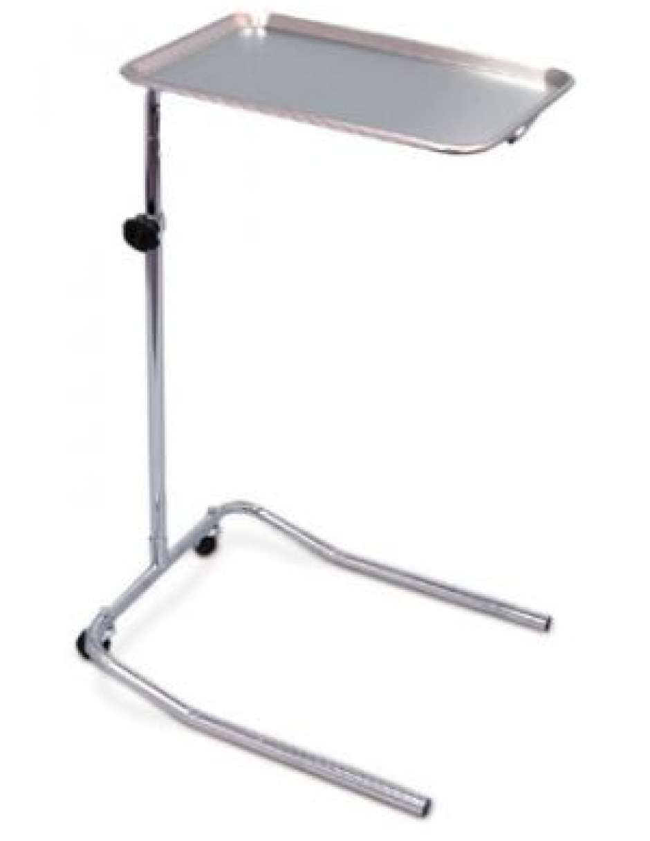 This Mayo-Type Instrument Table features a stainless steel tray on chrome plated steel base with ball-bearing casters for increased maneuverability. Stay-put knob keeps tray at selected height. • Chrome plated steel tubing • Height adjusts from 31" to 50" (78.7 cm to 127 cm) • Tray size: 12 1/2" x 19" (31.8 cm x 48.3 cm)