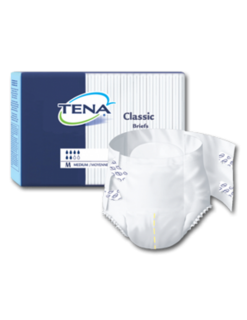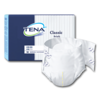 TENA Brief line features a flexible design with enhanced discretion, and protection for moderate to heavy bladder and/or mild bowel incontinence with security against leakage. TENA Classic Briefs are also suitable for fecal incontinence. Hook tab fastening allows unlimited refastening to ensure a secure, comfortable fit around the body to minimize leakage. TENA Classic Briefs also feature comfortable core technology that wicks fluid away from skin and traps it into the brief. The briefs have a soft nonwoven backsheet for improved comfort and dignity.