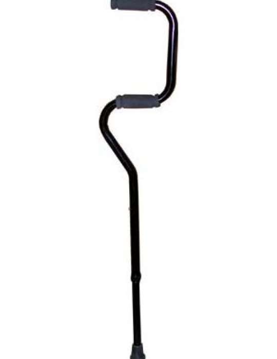 This derby handle cane offers push-button height adjustment, and folds down easily. Features specially formed connections for a secure fit, aluminum tubing and durable stretch rope. Plastic carry pouch included.