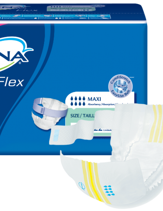 Tena ProSkin Flex Briefs are designed to allow easier and more ergonomic product changes while the soft, elastic ComfiStretch belt ensures a comfortable fit and leakage security.