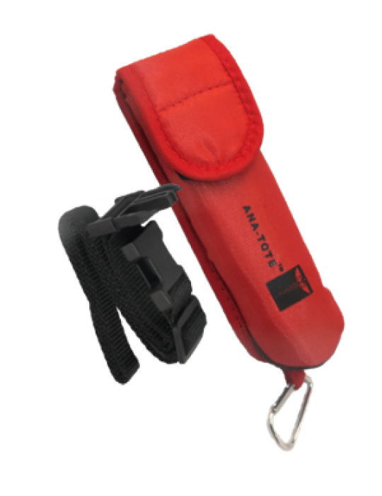 Carry your auto-injector securely with a thermal red ana-tote and adjustable belt.