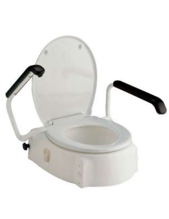 Elongated Toilet Seat Raiser with Lid and Armrests