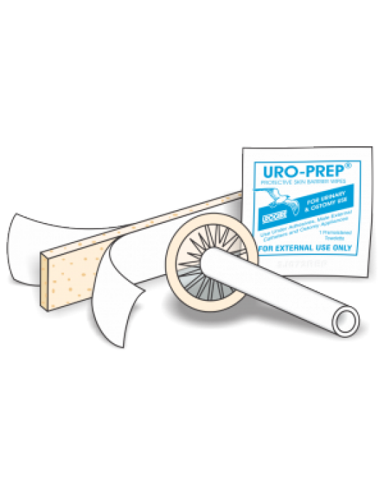 Urocare 5124530 Uro-Con Texas-Style Male External Catheters Medium 30mm with 4" Tube Urofoam-2 and Uro-Prep Box/50